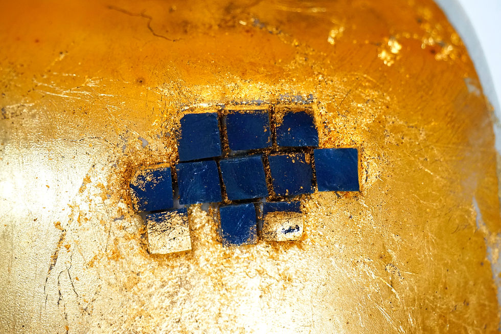 2021. 25x17cm. Jarrón roto, smalti, dorado a la hoja, vidrio de color.